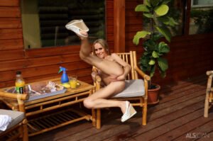 La sexy euro de euro Leyla Black se relaja en su cubierta trasera con un buen libro. Lo que sea que lea la lectura la ponga caliente y molesta, por lo que se rocía con agua y quitándose de su vestido para refrescarse. Ella desliza algunos dedos en su coño mojado y afeitado, luego trabaja todo el puño en la muñeca con un poco de ayuda de su novia, Amirah. Leyla luego se recuesta y deja que Amirah Fist la folle profunda.