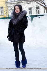 La noche hace alarde de su construcción atlética y delgada en el piso húmedo y húmedo, mostrando sus pechos perfectamente redondos, pezones hinchados, cintura delgada y lindo y redondo trasero. With wide open and flexible poses, she spreads her sexy legs wide open like a graceful dancer. Her wetlook and sultry stare keeps us glued from start to finish.