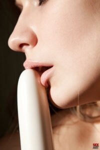 Era una tarde calurosa y la lujuriosa Simona también se sentía caliente. Se quita sus bragas de encaje morado, revelando sus labios suaves y deliciosos. Luego juega con su vibrador blanco, lo acariciando sensualmente sobre sus suaves labios rosados hasta el ombligo bien tonificado hasta que alcanza su coño. Lo desliza en profundidad mientras imagina que una polla grande y gorda está dentro de su coño húmedo y cálido. Ella deja escapar un ligero gemido mientras llega a la ventana.