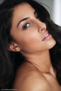 Una vista magnífica con una joven doncella elegante con el tipo de belleza que inspiró a Kings a librar guerras para poseerlo. Artículos faciales impecables con ojos crueles notablemente oscuros, labios llenos y reflectantes, una tez bellamente bronceada y tonos de piel de color café que brilla y la manera oscura y lustrosa. La expresión segura, las posturas elegantes y la iluminación suave contribuyen a un sentido de alguien aquí que es de naturaleza real. Su encanto seguro y provocativo, junto con la postura del cuerpo artístico crea una obra maestra que es distinta de ERRO.
