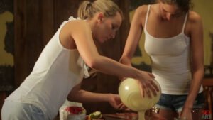 Con una animada banda sonora de flamenco que indica que el productor Ariel Piper Fawn y el último lanzamiento del director Andrej Lupine fueron filmados durante su reciente estancia a la isla española de Lanzarote, " Apple Pie " se desarrolla en una acogedora cocina. Sylvie Deluxe y Whitney Conroy trabajan intensamente en su tarea: hornear una dulce manzana. Pero una vez que el plato está en el horno, giran sus atenciones entre sí. La atracción aquí es obviamente mutua, pero es Sylvie quien hace el avance inicial más dramático y libera rápidamente a Whitney de sus pantalones cortos y bragas. Y es solo después de tratar a su novia a una serie de clímax gemidos que Sylvie se derrumba y deja que Whitney entregue su propio apetito por la tierna carne femenina. Transportado por la pasión y la abrumadora atracción erótica, los tórridos se pierden en el momento y casi olvidan la masa que han estado horneando. Caliente, dulce y muy agradable, " Apple Pie " es una fiesta para los sentidos.