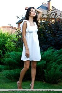 Una excursión al aire libre entre los arbustos verdes y las delicadas flores proporcionan un escenario encantador para la juguetona Leila A.
